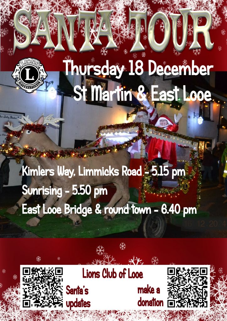 Santa has confirmed that he will be available to visit Looe from 15th to 19th December and he is looking forward to seeing you all.